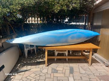 Canoa Kajak come nuova, robustissima in plastica polietilene, solo un paio di piccoli segni dovuti al trasporto! Praticamente mai usata e sempre custodita al coperto. Stabile e veloce in andatura, ottima per escursioni anche a lungo raggio in mare e lago. Gavone stagno, elastici di fissaggio e sedile in dotazione. Adatta ad adulti anche di corporatura robusta! Vendo causa inutilizzo ed acquisto nuovo ...giocattolo!Dimensioni 400x63cm peso 20kg volume 350L quindi trasportabile sull'auto senza problemi! Ritiro a carico dell'acquirente!