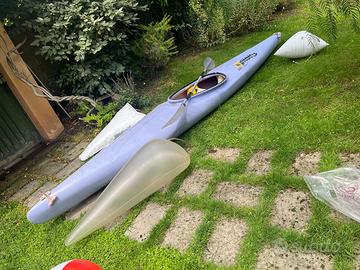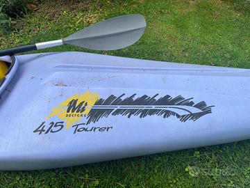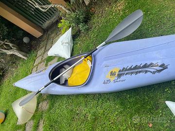 Michigan Mi415Tourer Molto versatile, ottimo compromesso tra stabilita e prestazioni per acque ferme e in mare, per principiantiMi415 e per canoisti esperti. Non è il kayak da pivelli del villaggio vacanze e non è il kayak da olimpionici che cercano il record. Scafo in polietilene a stampaggio rotazionale. Vendo completo di: - sacchi riserva di galleggiamento - minigonna - pagaia Ha seggiolino con schienale regolabile e rastrelliera poggiapiedi su piú posizioni.