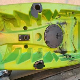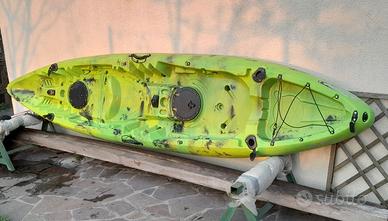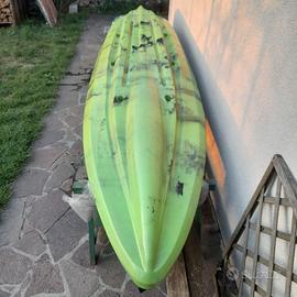 Kajak on- top 2 posti + 1, 3,80 cm., pagaie con cordino antiaffondamento, telo di copertura, sedili regolabili, carrelino per trasporto. Ideale per famiglie, noi ci siamo andati in 5, 4 comodi (2 adulti e 2 bambini). Ottimo per la pesca ha degli alloggiamenti per le canne da pesca. Usato pochissimo.