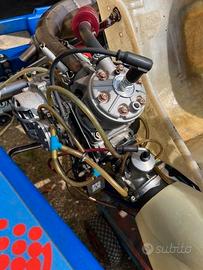 Kart kz GOLD motore VORTEX 125 PRONTO PISTA il motore ha 0 ore “sotto” (cuscinetti, biella, fascia pistone e spinotto nuovi), termico (rinfrescato al momento del lavoro al banco) 20/30 ore, frizione nuova, carburatore nuovo, pompa acqua nuova. Il kart ha gomme nuove (0 ore), cambio al volante (reversibile), telemetria ALFANO, inoltre due treni di gomme comprensivi di cerchi, tuta e cover kart carrellino porta kart da box inoltre Carrello appendice con spazio per due kart (a parte 800 euro) tutto in blocco prezzo 2400 euro trattabili