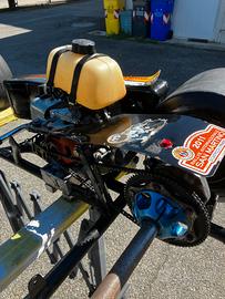 Vendo Kart telaio CRG adatto a bambini dai 5 ai 9 anni che vogliono iniziare a divertirsi Sedile mancante, motore fermo da 5 anni ma facilmente reperibile a modico prezzo nuovo su Internet uguale ai classici decespugliatori Comprese altre 4 gomme più pedaliera regolabile e due ruote da drift in teflon post