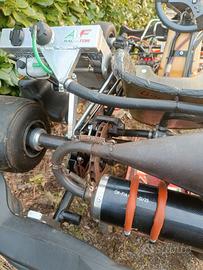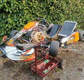 vendo kart KZ CRG road rebel con motore TM K9. pompe freno revisionate e impianto frenante originale in buono stato. Motore revisionato con una sola uscita, Radiatore AF maggiorato e silenziatore omologato. Mycron 3 con sonda acqua e sensore per tempi sul giro. 1 set di scorta. cerchi in magnesio mondokart, attrezzatura e ricambi vari (ultima foto) gomme da sostituire prezzo trattabile