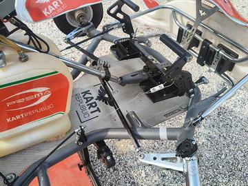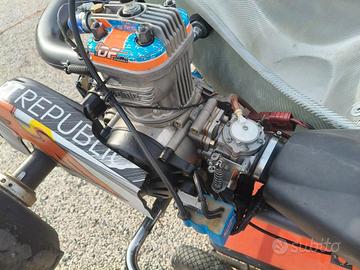 Kart Republic in ottime condizioni , motore dopo revisiona ha fatto 15 litri, cambiato motorino avviamento, sedile nuovo, pompa dell'acqua. Motore molto prestante di ex squadra corse , attualmente monta collettore di scarico categoria Juonior, con pedane arretrate per bambini ( solo quelle costano € 200,00) cambiando il solo collettore di scarico si passa alla categoria Senior, massima potenza. Si vende senza strumento eventualmente posso fornirlo a parte. Attualmente lo usa mia figlia di 13 anni .