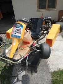Vendo kart pcf f1 cik 03 (versione 4 tubi) del 1989. Telaio in ottime condizioni, ferri conservati originali non restaurati in ottime condizioni. I freni sono appena stati revisionati (pompa, pinza, pastiglie), cerchi originali, sedile originale, volante originale. Il motore è il suo pcr tsv 80 con all'incirca 15 litri da revisione completa (pistone, Biella, gabbia e cuscinetti banco). Ottimo mezzo per partecipare a raduni storici e qualche uscita amatoriale. Vendo per cambio categoria. Prezzo di poco trattabile