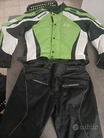 completo giacca e pantalone di cordura in ottimo stato la giacca e stata usata ma poche volte mentre il pantalone non e mai stato utilizzato ha una doppia imbottitura invernale che si può mettere o togliere in base alle stagioni la taglia del completo (giacca 2XL)mentre il (pantalone XL) visibile in foto invece il casco e una taglia M e anche esso e in ottimo stato per informazioni o altre foto non esitate a contattarmi sono disponibile il prezzo 250 trattabili