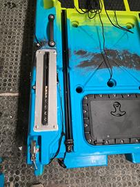 SKF K2 – PROPEL IlSKF K2 – PROPELè un kayak monoposto a pedali con elica, progettato per la pesca e per le avventure su fiumi, laghi e mare. Costruito in materiale polietilene con tecnologia modulare, unisce robustezza, versatilità e semplicità d’uso. Grazie al sistema di propulsione a pedali con timone integrato, garantisce un controllo preciso e un’eccellente manovrabilità, anche controcorrente o in condizioni di vento, riducendo la fatica durante la navigazione. In più ho aggiunto 2 piastre inox per montare railblaza come da foto. Caratteristiche tecniche Lunghezza: 286 cm Larghezza: 90 cm Altezza scafo: 32 cm Peso: 35 kg Portata massima: 130 kg