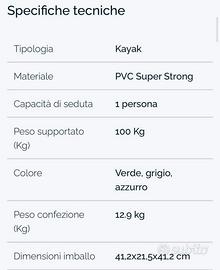 Vendo kayak gonfiabile usato 3 volte.con sacca trasporto ,remi,pompa, gilet salvataggio. Ritiro a Cossato (Biella)