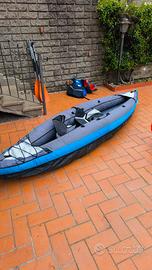 Vendo kayak gonfiabile nono o biposto in ottime condizioni, completo di tutta la dotazione necessaria per la navigazione. Il materiale è integro, senza riparazioni o perdite d’aria, sempre riposto con lavaggio dopo utilizzo. Il kit include: Kayak 1 o 2 posti, con sedili regolabili. 2 Pagaie smontabili. 2 Giubbotti di salvataggio 1 Pompa di gonfiaggio manuale ad alta pressione. Sacca per il trasporto e pinna direzionale rimovibile. Con 10€ in più aggiungo pompa elettrica per un gonfiaggio senza sforzo.