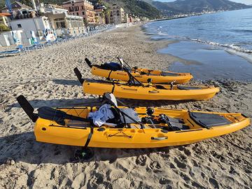 Vendo 5 fantastici kayak a pedali, perfetti sia per la pesca sia per gite rilassanti in mare senza alcuna fatica. I kayak sono pari al nuovo: sono l'unico proprietario, tre di essi non sono mai stati utilizzati, mentre gli altri due sono stati impiegati davvero pochissimo, circa 2 o 3 giornate al massimo. La vendita è da privato, per semplice cambio progetto.