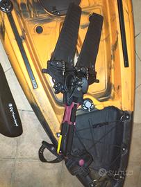 Vendo ottimo kayak a pedali divisibile. Facilmente trasportabile, entra nel cofano di una macchina, compreso di pagaia e seggiolino alto, portacanna. Ancora in garanzia. Condizioni pari al nuovo. CARATTERISTICHE TECNICHE: Lunghezza totale 270 cm Lunghezza moduli 140 cm Larghezza 79 cm Altezza in prua 32 cm Peso totale 27,5 kg Peso modulo anteriore 13,5 kg Peso modulo posteriore 14 kg ( incluso timone) Peso sedile 1,8 kg Peso gruppo pedali 3,5 kg Gavone centrale : si Predisposizione motore : si Maniglie laterali : 2 rigide Maniglie prua e poppa : 2 morbide Predisposizione Starport centrale : si Fori autosvuotanti : 8