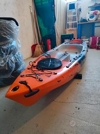 Kayak monoposto (o biposto adulto + bambino) Big Mama acquaprima limited edition colore "snake arancione". Vendo per inutilizzo compreso di pagaia, seggiolino, carrello e telo impermeabile.