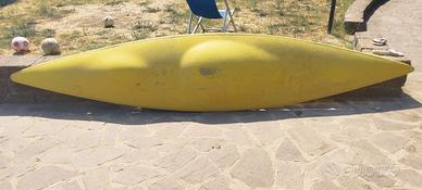 Kayak molto robusto, in buone condizioni, mai lesionato. Sotto alla seduta si è consumata la verniciatura per il necessario sfregamento sulla sabbia nell'ingresso in acqua. La canoa modello "Squirting" consente acrobazie come candela, 360 da fare in acqua ferma o in acqua cosa come fiume o mare con onde. Molto maneggevole.