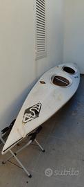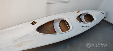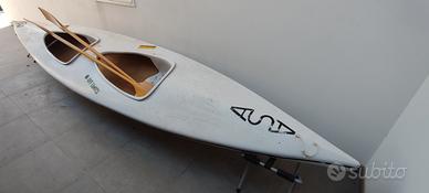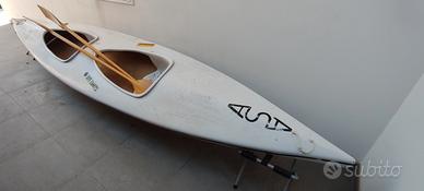 Kayak ASA biposto in vetroresina con pagaie originali e sacche di galleggiamento. Lunghezza 5 metri.
