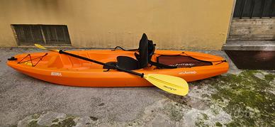 Vendo per scarso utilizzo Kayak Atlantis KEDRA PRO di colore arancione. Sempre conservata in cantina al riparo dal sole. Caratteristiche Tecniche: Lunghezza: 266 cm Larghezza: 69 cm Altezza: 21.5 cm Peso: 17.5 kg Carico Massimo: 110 Kg Materiale: polietiline ad alta intensità Tecnologia: Stampaggio per soffiaggio Dotazione Accessori Inclusi: pagaia smontabile in alluminio sagome puntapiedi integrate seduta standard in neoprene con schienale rigido pieghevole 1 gavone con tappo nautico a cerniera 2 maniglie laterali 1 maniglia a prua 1 tappo di drenaggio 1 rete elastica vano posteriore 1 elastico vano anteriore.