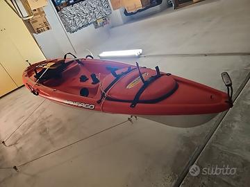 vendo Kayak 3.5 metri peso 25 kg, attrezzato per pesca con reggicanna posteriori fissi (per traina) + regicanna girevole e regolabile anteriore + ecoscandaglio lowrance X4 pro, gavone interno ideale per stoccaggio canne o altre attrezzature condizioni ottime