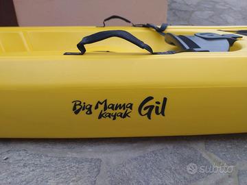 Vendesi kayak Big Mama modello Gil monoposto. Come nuovo, utilizzato solamente due volte, in perfette condizioni. Oggetto di primissima qualità, originale con pagaia originale, prodotto made in Italy, acquistato direttamente dalla casa madre a Frosinone. Vendo per scarso utilizzo. Ritiro a carico dell'acquirente, prezzo non trattabile.