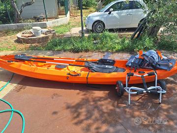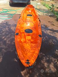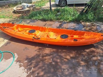 Vendo kayak Big Mama sit-on-top per 2 adulti + 1 bambino (posto centrale). Ideale per mare, lago, escursioni tranquille in fiume o pesca. Un mezzo versatile, stabile e pronto all’uso, completo di accessori Caratteristiche: •Design ampio e piatto dello scafo per massima stabilità •Tiraggio minimo: naviga anche in acque molto basse •Ampio vano portaoggetti posteriore con cinghie elastiche integrate •2 poggiapiedi sagomati a 4 livelli, adatti a qualsiasi altezza •Sedili ergonomici antiscivolo per massimo comfort •Maniglie di prua e poppa per facile trasporto •Linee di sopravvivenza integrate: risalita a bordo facilitata •2 gavoni stagni con chiusura •Supporti per pagaie e 4 portacanne integrati •Lunghezza: circa 3,70 m •Materiale resistente ai raggi UV Il kayak è in ottime condizioni, usato pochissimo e sempre lavato dopo l’uso. Nella vendita sono inclusi i seguenti accessori: •2 pagaie •1 schienale •2 giubbotti salvagente •1 carrellino per il trasporto