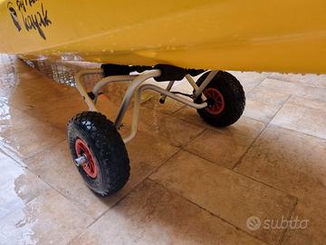 vendo per motivi di spazio kayak canoa big mama modello tankero completo di pagaia seduta originale portacanna aggiunto con attacco rapido railblaza carrellino di trasporto. il kayak ha la particolarità del timone che viene gestito dai due pedali come si vede in foto.