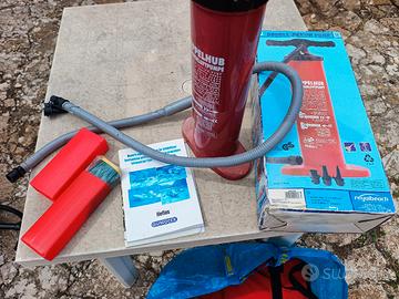 Biposto da 3,80 metri, vani a prua e poppa, puntapiedi, tre valvole di gonfiaggio push-push, valvola di sovrapressione. Ben accessoriato con doppia pagaia smontabile, due giubbotti salvataggio adulto e ragazzo\a, manuale istruzioni e kit riparazione, sacca da trasporto. Regalo pompa gonfiaggio professionale per gonfiarlo in pochi minuti. Stabile e molto divertente, molto difficile che si fori o danneggi visto lo spessore e il materiale usato ma anche se fosse si ripara con grande facilità. Accetto proposte o scambio