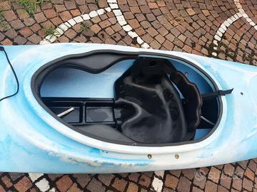 kayak blu rigido, pressoché inutilizzato, in buone condizioni