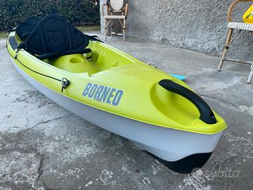 Vendo BIC/TAHE Borneo kayak, sit-on-top. Utilizzato per qualche anno una decina di occasioni in totale. Dotato di remi, sedute e ruote originali. Presenta alcuni segni da utilizzo lungo lo scafo. Prezzo 750