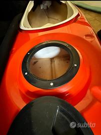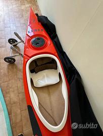 Kayak Canoa Tikit Overline in vetroresina con unico gavone a tenuta stagna e sacco di punta gonfiabile Presenta qualche piccolo segno di usura ma in ottimo stato tenuto sempre al chiuso Agile e manovrabile, con peso contenuto (12 kg circa) Lunghezza 312 cm Larghezza 54 cm Volume 168 lt Dimensioni pozzetto 38x80 Ottimo per scuole di kayak, bambini e adolescenti o persone di piccola statura In regalo, pagaia e piccolo carrellino