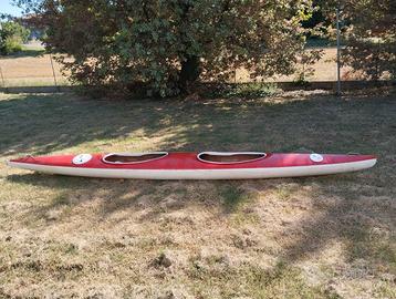 Vendo kayak a 2 posti in vetroresina, lungo 5,20 metri, completamente restaurato con verniciatura nuova e timone in acciaio inox smontabile (da perfezionare per essere ottimale), con comando a pedale dal seggiolino posteriore.