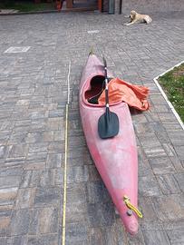 come da foto, in vendita kayak. Lunghezza 390 cm, pozzetto larghezza 45 cm. con pagaia, copripozzetto e sacco di punta e di coda (da verificare tenuta al gonfiaggio). per chi vuole cominciare e per acque tranquille. consegna solo a mano. no spedizione.