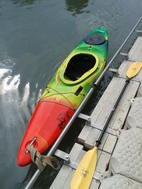 Vendo kayak crossover Pyranha Fusion misura media: lungh. 312 cm, largh. 66 cm, peso 21 kg, dimensioni esterne pozzetto 90/49 cm, taglia paddler 55-110 kg. Dotato di ampio gavone di poppa con grande tappo ovale e di deriva mobile regolabile per un'ottima direzionalità in acqua piatta (pagaia non compresa) Ottima barca per turismo fluviale fino al 3°grado.