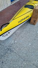 Vendo Korsa 15.4 Explorer della CS canoe in Kevlar Carbon lunghezza 470cm completo di paraspruzzi, accessori trasporto (2 gondole, tappo pozzetto, 2 cinghie) tenuto sempre al chiuso ed usato pochissimo, normali segni di usura video ed altre foto a richiesta.