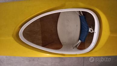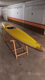 Vendo kayak da fiume in vetroresina, lunghezza 3,7 metri, in buone condizioni. Solido e facilmente riparabile in caso di graffi o piccole crepe.
