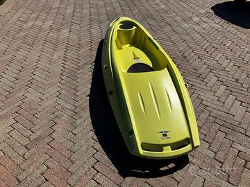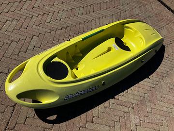 Il Bic Sport Ouassou è un kayak versatile e maneggevole ideale per il divertimento in spiaggia. Le maniglie di poppa ti consentono di aggrapparti e nuotare e di accedere facilmente a bordo. Grazie allo scafo a forma di spatola gestisce surf e onde comodamente. Il kayak e’ da riparare nella parte superiore (dove si vede il segno verde) ma si tratta di una riparazione semplice. In dotazione anche una pagaia smontabile in due pezzi. Caratteristiche principali: Lunghezza: 260 cm Larghezza: 78 cm Peso: 18 kg Portata max: 110 kg