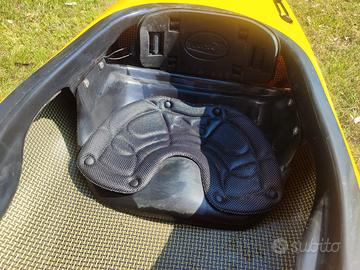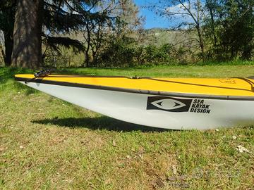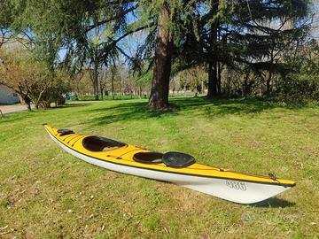 Vendesi Kayak da mare in ottime condizioni! Costruzione effettuata sottovuoto: lo scafo in carbon kevlar e la coperta in diolene lo rende leggero (solo 21kg). Ottimo da mare ma anche da lago. La lunghezza lo rende veloce e la chiglia buono anche in caso di vento o mare formato. Grande capacità di carico grazie al gavone anteriore (38 litri) e a quello posteriore (60 litri). Perfetto e pronto per campeggio nautico. Accessoriato con: Pagaia in carbonio Gonnellino paraspruzzi Pagaia divisibile in due di scorta Pompa per svuotarlo Giubbetto di galleggiamento Portacellulare Carrellino per trasporto Per qualsiasi informazioni non esitate a contattarmi Attualmente il prezzo di listino è di 2.200€.