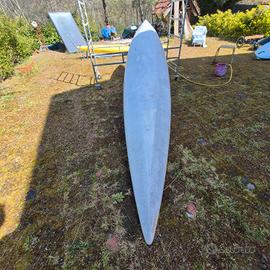 kayak mare completamente in vetroresina lunghezza cm.430,fondo sano parte superiore con piccole riparazioni che però non hanno intaccato la struttura canoa,costruttore italiano specializzato in kayak anni 70/80 ,questa canoa e molto filante,leggera e veloce.