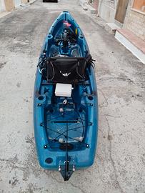 Kayak super accessoriato misura 320 cm in lunghezza, ha una capacità di carico di 211 kg, quindi è adatto al pescatore più esigente che vuole uno scafo facile da condurre e resistente agli urti. Costruito in polietilene a bassa densità con sistema “anti-crush” per ottenere un peso contenuto di soli 35,4 kg, grazie alla propulsione ad elica permette escursioni di medio-lungo raggio con andatura media o sostenuta, ma sempre estremamente silenziosa grazie al sistema di propulsione brevettato che non prevede l’utilizzo di ruote dentate. Sono presenti 4 portacanna integrati e 2 slitte metalliche (rail) con attacco standard, studiate per poter posizionare altri porta-canna o strumenti per la pesca come gli ecoscandagli. Questo sit on top è perfetto per la pesca in mare, lago e fiume. Il timone a poppa si comanda facilmente con una mano tramite una piccola maniglia.