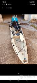 Il K-largo è un moderno kayak da pesca, caratterizzato da un design dello scafo elegante, è incredibilmente stabile e non deriva dal vento. Estremamente manovrabile grazie al design di chiglia e scafo. Completo di stabilizzatori,2 porta canna, carrellino