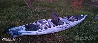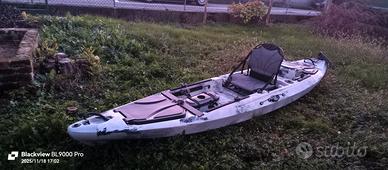 kayak per fiume, lago, mare, con bauletto, porta canne, pagaia, timone, usato pochissimo. 650 Euro n. t.