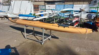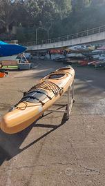 Kayak biposto con timone retrattile ideale per fiumi e laghi. Agile nelle curve grazie alla carena larga e al rocker pronunciato. Molto stabile, spazioso e sicuro grazie all’alto volume. Scafo rigido e robusto in materiale HTP, fabbricato in Germania, costa nuovo 2200€. Perfetto per escursioni e avventure in ogni condizione. Vendo con 2 pagaie originali e il carrellino.