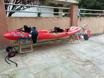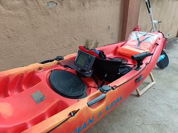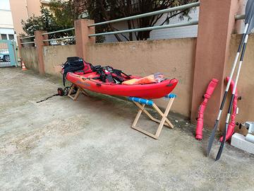 Vendesi kayak da pesca o per divertimento due posti più uno( bambino/ cane)in buonissime condizioni, attrezzato con ecoscandaglio e portacanna. Varie attrezzature, borse stagne, raffio, coppo , ruote per lo spostamento , supporti in acciaio inox per trasporto su barre portapacchi e tante altre cose.Eventualmemte anche motore elettrico mai usato. Il valore a nuovo supera i 2000 euro. Lo cedo a 1000 euro trattabili