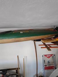 Kayak in vetroresina, lungo 3,65 m, ottimo per discesa fiumi in acque mosse, completo di parapozzetto e sacchi interni per galleggiamento. Qualche segno di usura sullo scafo, sempre tenuto in garage.