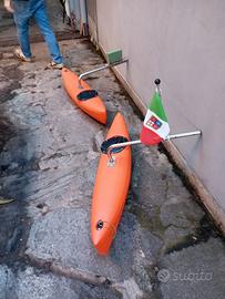 Vendo Kayak Galaxy KP-NY01 usato massimo 4 volte, come da foto, 2 posti + 1 (child). Attrezzato per la pesca (mare, lago, fiume) con 6 porta canne (due girevoli e quattro fissi), 2 sedute con zainetti portaoggetti e 2 pagaie. Comprensivo di: - Motore 40 libbre, 12 volt, 5 velocità + retromarcia - Ancora - 3 Giubbotti di salvataggio (NUOVI, ancora con cartellino) - 2 Ombrelli da sole - Vano porta batteria con alimentatore a pannelli solari (con prese usb) - 2 stabilizzatori con vano portaoggetti - 2 carrelli trasportatori - Intera copertura (color mimetico come il kayak) NESSUN difetto. Disponibile ad essere visionato.