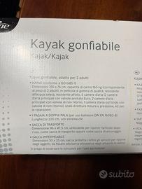 Kayak gonfiale due posti, non è mai stato tirato fuori dalla confenzione originale, comprato l’anno scorso e mai usato. Pagato oltre 100 €