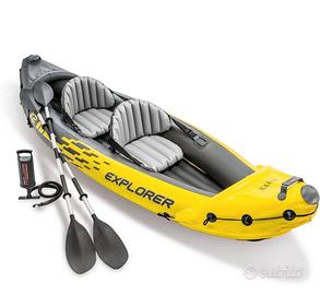Kayak gonfiabile Intex Explorer K2, ideale per due persone. Colore giallo e grigio.