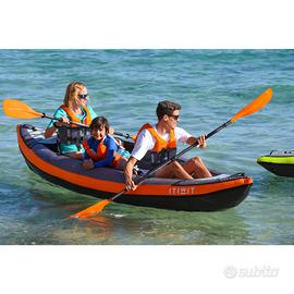 Vendo kayak gonviabile della Decathlon per errato acquisto, usato una sola volta, compreso di 2 pagaie, pompa per il gonfiaggio. 3 giubbotti salvataggio e borsa impermeabile il tutto a 200 euro