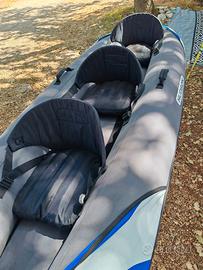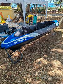 Vendo Kayak gonfiabile Sevylor Hudson 3 posti rimovibili praticamente nuovo completo di remi usato solo una volta quest'anno in quanto la bambina poi aveva paura di salirci, pagato 599,00 lo vendo a 380,00 euro compreso di set remi presi a parte.