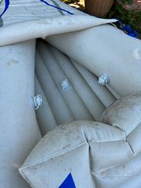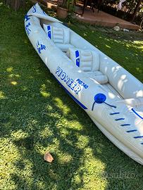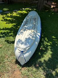 Kayak gonfiabile per mare e lago. Il kayak è stato utilizzato poche volte ma è rimasto un po’ macchiato dall’acqua perchè rimasto chiuso e bagnato una volta. Dimensioni: 340 x 88 x 42 cm. Dimensioni da chiuso: 65 x 44 x 21 cm. Penso circa 11 Kg.