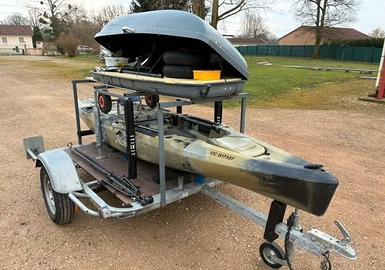 Vendo: kayak Hobie Outback immatricolato. Acquistato a settembre 2020. Usato 4 settimane all'anno. Ottime condizioni. Carrello in acciaio inox, portacanne, ecoscandaglio Lowrance Hook 5 con batteria. Manutenzione eseguita sul sistema di pedalata con lubrificazione di tutti i cuscinetti. Include un carrello per 2 motociclette convertito per il kayak, con ruota di scorta e immatricolazione.