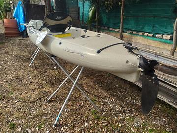 Kayak Hobie Revolution 13, acquistato in settembre 2015 presso noto rivenditore, in perfette condizioni, senza graffi o crepe sullo scafo, impercettibili segni di usura dovuti al normale utilizzo. Allestimento Mirage Drive con pedaliera a spinta.