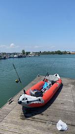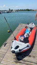 2 remi, 2 portacanne, porta telefono, pompa per gonfiare e sgonfiare, toppe, 2 poggia piedi, 2 sedili gonfiabili, cuscino gonfiabile, zaino, manometro, chiave per le valvole, pinna per fondali alti e pinna per bassi fondali.