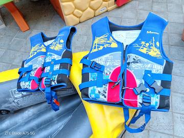 Vendo usato, come da foto, completo di tutto, inclusa pompa manuale. Unico difetto uno dei sedili gonfiabili e forato. Aggiungo pertanto per compensare 2 giubbotti di salvataggio in neoprene per bambini usati poco. Misura M ed L. alla favolosa offerta di 90 €